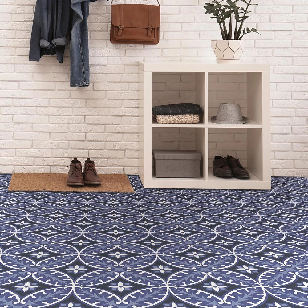 Make a bold statement floor with these easy-to-install peel and stick tiles. Purple, white and charcoal hues add a moody touch to the floral and leaf motifs. Capri Peel and Stick Floor Tiles contains 20 pieces on 20 sheets that measure 12 in. x 12 in.