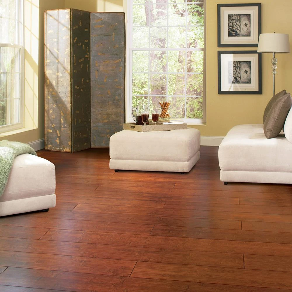 Home Legend Solid Hand Scraped Bamboo Flooring has a natural beauty and stylish finish that complements any decor. The prefinished flooring has a 7-layer aluminum oxide finish that provides protection from everyday wear. This product has achieved Greenguard Indoor air Quality Certification and has been tested for more than 10,000 volatile organic compounds, including formaldehyde, to meet these standards. The tongue and groove profile allows the flooring to be installed on and above grade. This earth-minded flooring is a perfect choice for any room in your home – you can rest assured knowing you are getting a floor that was produced with ethical standards and won’t pollute the air you breathe.