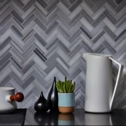 Jeffrey Court Zebra Plains Gray Herringbone 11 In. X 12.75 In. X 10 Mm Polished Marble Mosaic Wall/Floor Tile